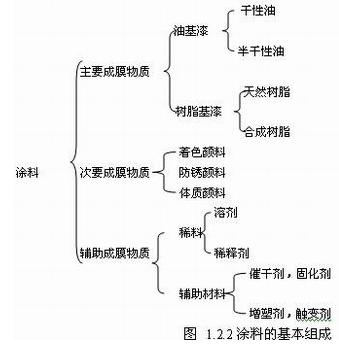 (1) 涂料的基本組成。涂料的品種雖然很多,但就其組成而言,大體上可分為三部分,即主要成膜物質、次要成膜物質和輔助成膜物質。
