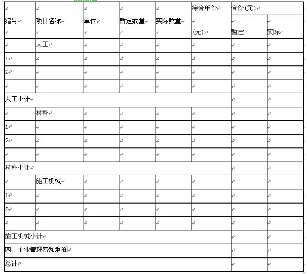 計日工應列出項目名稱、計量單位和暫估數量。計日工可按照表2.2.7的格式列示。