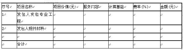 注:此表項目名稱、服務內容由招標人填寫,編制招標控制價時,費率及金額由招標人按有關計價規定確定;投標時,費率及金額由投標人自主報價,計人投標總價中。