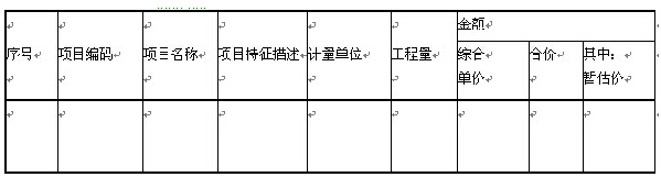 注:此表項目名稱、暫定數量由招標人填寫,編制招標控制價時,單價由招標人按有關計價規定確定;投標時,單價由投標人自主報價,按暫定數量計算合價計入投標總價中。結算時,按發承包雙方確認的實際數量計算合價。