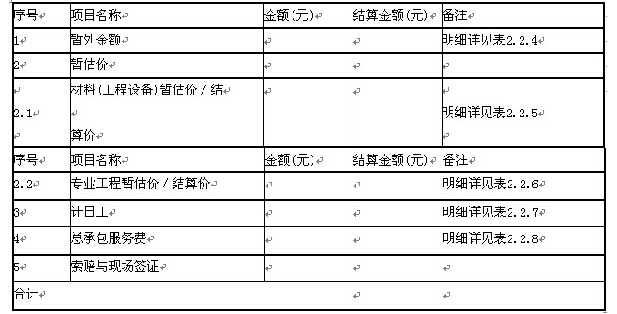 注:此表“暫估金額”由招標人填寫,投標人應將“暫估金額”計人投標總價中。結算時按合同約定結算金額填寫。