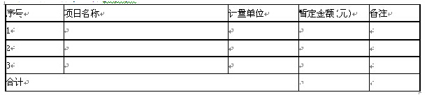 注:此表由招標人填寫,如不能詳列,也可只列暫定金額總額,投標人應將上述暫列金額計入投標總價中。