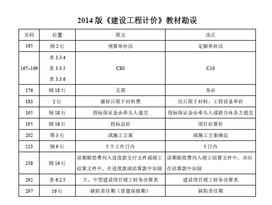 2014版造價工程師《建設(shè)工程計價》教材勘誤