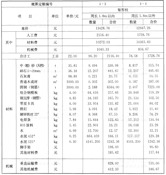 ?、谠O備及安裝工程的列表形式。設備以“t”或“臺”為計算單位,也可以設備購置費或設備原價的百分比(%)表示;工藝管道一般以“t”為計算單位;通信電話站安裝以“站”為計算單位。列出指標編號、項目名稱、規格、綜合指標(元/計算單位)之后一般還要列出其中的人工費,必要時還要列出主要材料費、輔材費。
