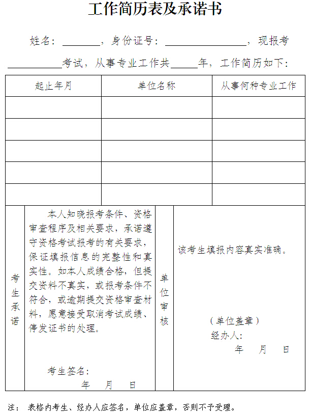 2.工作簡歷表及承諾書(見附件2,考生從本網站上自行下載,用A4紙打印,簽名后經單位審核蓋章)。