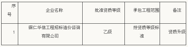 根據住房和城鄉建設部令第149號,經審查以下1家企業達到所申請資質的要求,公示如下: