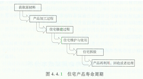 工程壽命周期環(huán)境成本是指工程產(chǎn)品系列在其全壽命周期內(nèi)對千環(huán)境的潛在和顯現(xiàn)的不利影響。工程建設對于環(huán)境的影響可能是正面的,也可能是負面的,前者體現(xiàn)為某種形式的收益,后者則體現(xiàn)為某種形式的成本。在分析及計算環(huán)境成本時,應對環(huán)境影響進行分析甄別,剔除不屬于成本的系列。在計量環(huán)境成本時,由于這種成本并不直接體現(xiàn)為某種貨幣化數(shù)值,必須借助于其他技術手段將環(huán)境影響貨幣化。這是計量環(huán)境成本的一個難點。圖4:4.1表現(xiàn)了住宅產(chǎn)品壽命周期可能影響環(huán)境的各個階段。