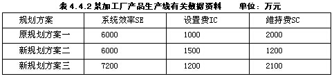 表4.4.2某加工廠產(chǎn)品生產(chǎn)線有關數(shù)據(jù)資料 單位:萬元