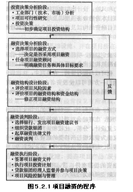 從項目投資決策開始,至選擇項目融資方式為項目建設籌措資金,一直到最后完成該項目融資為止,項目融資大致可分為五個階段:投資決策分析、融資決策分析、融資結構設計、融資談判和融資執行。每一階段的主要工作如圖5.2.1所示。