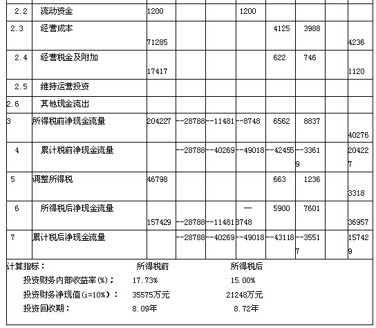注:1.本表適用于新設(shè)法人項(xiàng)目與既有法人項(xiàng)目的增量和“有項(xiàng)目”的現(xiàn)金流量分析。