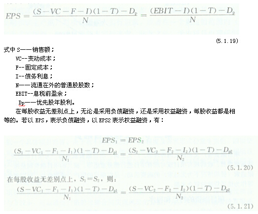 每股收益分析是利用每股收益的無差別點進行的。所謂每股收益的無差別點,是指每股收益不受融資方式影響的銷售水平。根據每股收益無差別點,可以分析判斷不同銷售水平下適用的資本結構。每股收益EPS的計算式如下:
