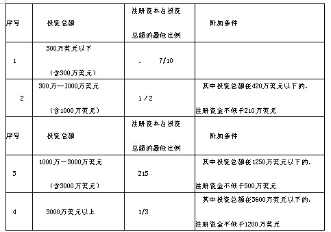 按照有關要求,外商投資企業的注冊資本應與生產經營規模相適應,其注冊資本占投資總額的最低比例見表5.1.2。
