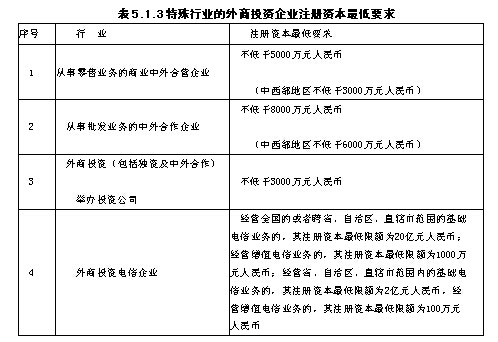 表5.1.3特殊行業的外商投資企業注冊資本最低要求