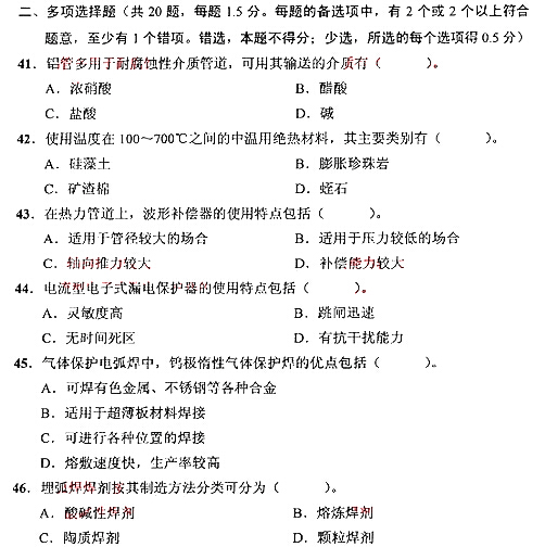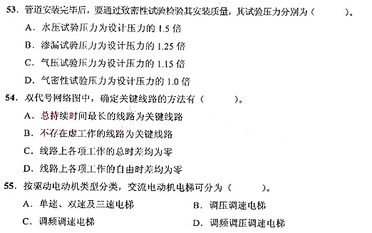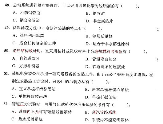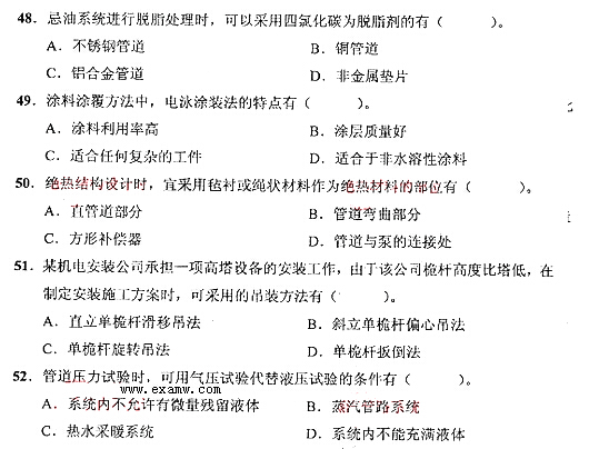 2007年造價(jià)工程師真題-安裝工程多選一(必做)
