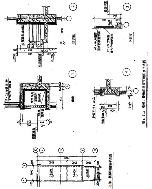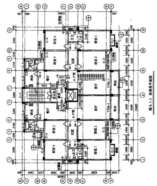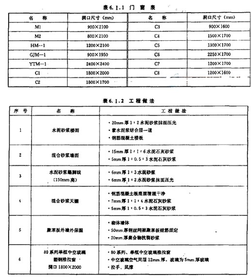 某小高層住宅樓建筑部分設計如圖6.I所示,共12層。每層層高均為3米,電梯機房與樓梯間部分凸出屋面。墻體除注明者外均為200mm厚加氣混凝土墻.軸線位于墻中。外墻采用50mm厚聚苯板保溫。樓面做法為20mm厚水泥砂漿抹面壓光。樓層鋼筋混凝土板厚100mm,內墻做法為20mm厚混合砂漿抹面壓光。為簡化計算首層建筑面積按標準層建筑面積計算.陽臺為全封閉陽臺,⑤和⑦軸上混凝土柱超過墻體寬度部分建筑面積忽略不計,門窗洞口尺寸見表6.I.1,工程做法見表6.I.2.