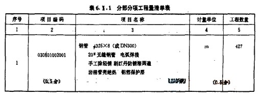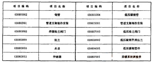 管網部分分部分項工程量清單項目的統一編碼見下表: