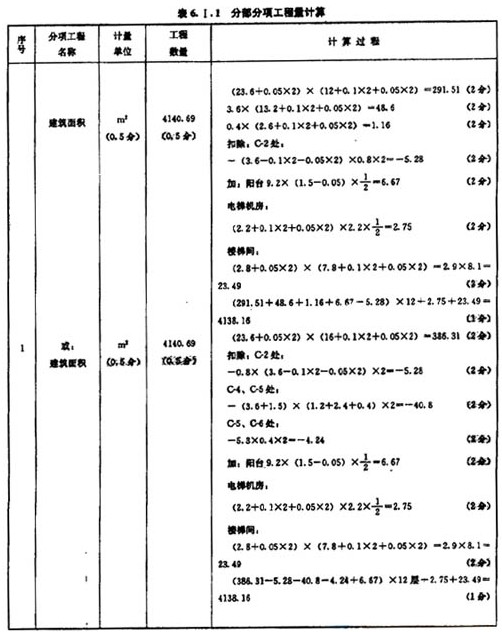 將計算過程、計量單位及計算結果填入答題紙表6.I.1“建筑面積計算”。