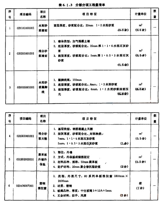 3.結合圖紙及表6.I.2“工程做法”進行分部分項工程量清單的項目特征描述,將描述和分項計量單位填入答題紙表6.I.3“分部分項工程量清單”。