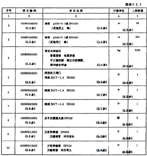 1.將各項管道和管道支架制作安裝清單項目工程量的計算過程,分別寫在答題紙相應位置。根據《建設工程工程量清單計價規范》的有關規定,編制如圖6.Ⅱ所示管網系統的分部分項工程量清單項目,將結果填入答題紙表6.Ⅱ.1“分部分項工程量清單表”第2、3、4、5欄內。