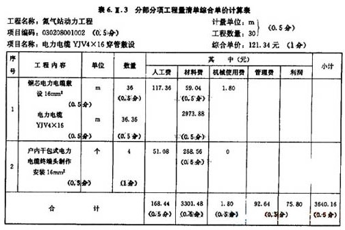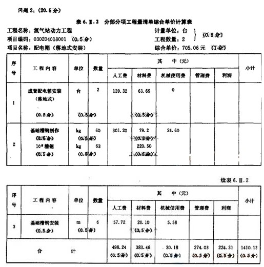 2.假設電力電統YJV4×16穿管敷設的清單工程量為30m.依據上述相關費用數據計算配電箱(落地式安裝)和電力電纜YJV4×16穿管敷設二個項目的綜合單價,并分別填入答題紙表6.Ⅲ。2和表6.Ⅲ。3