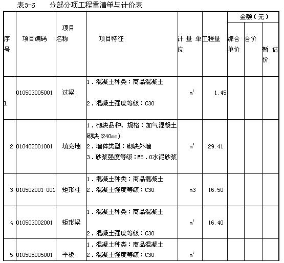 問題2:依據《房屋建筑與裝飾工程量計算規范》和《計價規范》的規定和問題1的工程量計算結果,編制相應分部分項工程量清單,掌握項目特征描述的內容。
