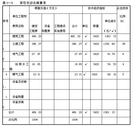 3.編制該住宅單項工程綜合概算書,見表3-9。
