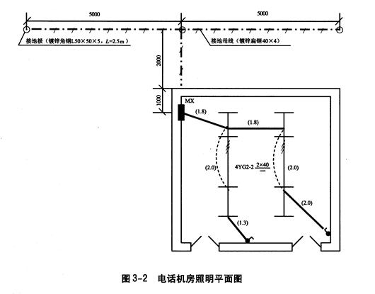 2.管線均為鍍鋅電線管咖20沿磚墻、混凝土頂板內暗配,頂管標高為4m;管內穿阻燃絕緣導線ZRBVl.5mm2;