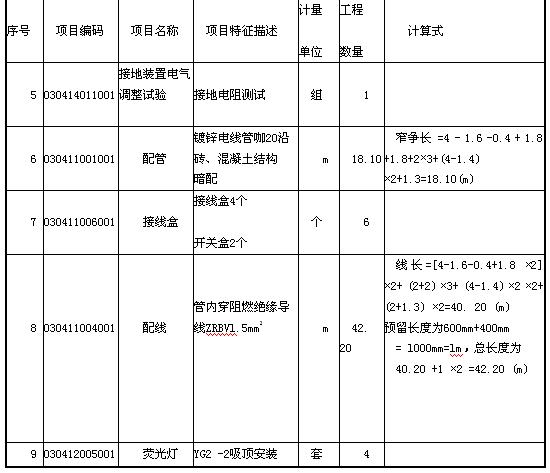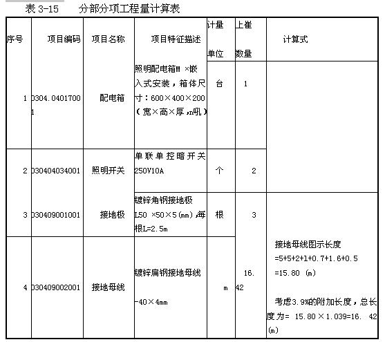 (2)計算接地母線工程量時,按清單工程量計算規(guī)則,按設計圖示尺寸以長度計算(另加3.9%的附加長度)。