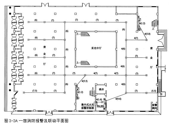 某商廈一層火災(zāi)自動(dòng)報(bào)警系統(tǒng)工程平面圖和系統(tǒng)圖如圖3-3A,3-3B所示,設(shè)備材料明細(xì)見(jiàn)表3-18。