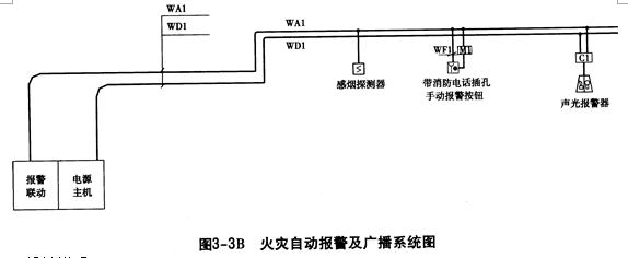 2.WA1為報(bào)警(聯(lián)動(dòng))二總線,采用NH - RVS -2×1.5, WD1為電源二總線采用NH - BV -2.5。