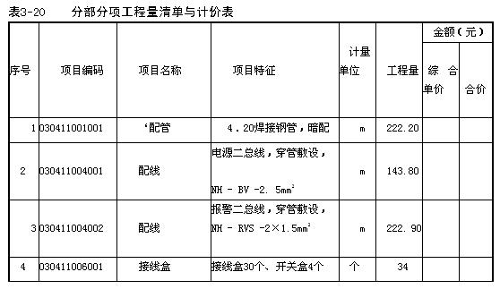 分部分項(xiàng)工程量清單見(jiàn)表3-20。