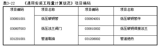 2.根據《通用安裝工程量計算規范》的規定,分部分項工程的統一項目編碼,見表3-22。