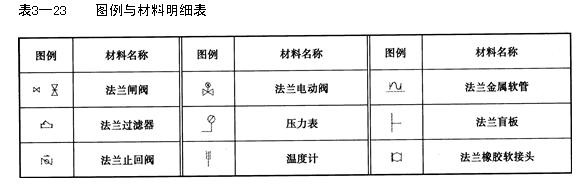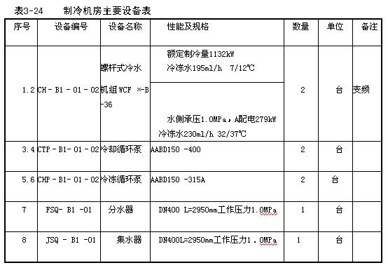 5.圖例與材料明細表、制冷機房主要設備表分別見表3 -23和表3-24。