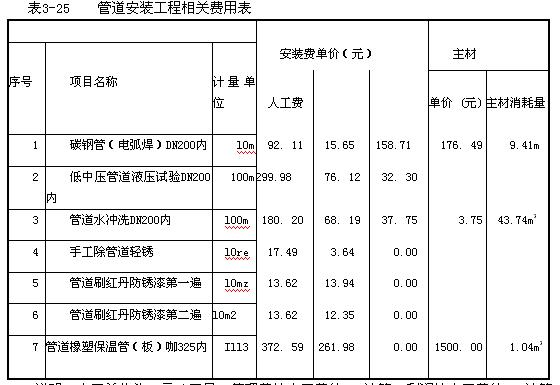 3.根據表3 -25給出的無縫鋼管硯19 ×9安裝工程的相關費用,分別編制該無縫鋼管分項工程安裝、管道刷油、保溫的工程量清單綜合單價分析表。