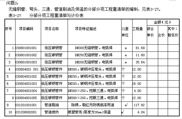 2.根據《通用安裝工程量計算規范》和《計價規范》的規定,編列該管道系統的無縫鋼管、彎頭、三通、管道刷油及保溫的分部分項工程量清單。