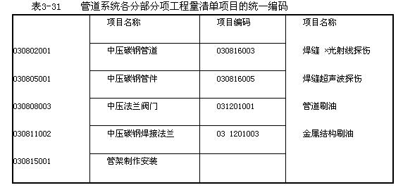 根據《通用安裝工程量計算規范》的規定,管道系統各分部分項工程量清單項目的統一編碼,見表3-31。