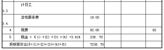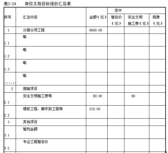 解:將各項費用的計算結果,填人單位工程投標報價匯總表3-32中,得表3-34。其計算過程寫在表3-34下面。