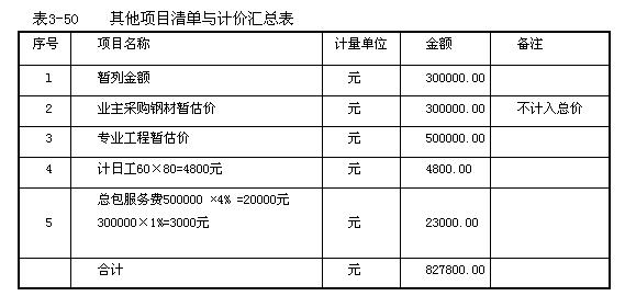 解:1.編制該工程其他項目清單與計價匯總表,見表3-50。