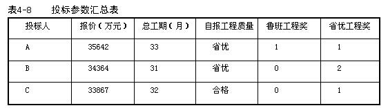 問題3實際上是考核對評標方法的理解和靈活運用。根據本案例給定的評標方法,這樣改變評標的規定并不影響各投標人的得分,因而不會影響評標結果。若通過具體計算才得出結論,即使答案正確,也是不能令人滿意的。