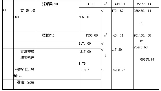 3.樓板C40的單價45.11元/m3顯然不合理,參照矩形梁C40的單價454. 02元/m3和樓板C40的合價701460. 50元可以看出,該單價有明顯的小數點錯位,應以合價為準,將原單價修改為451.10元/m3;