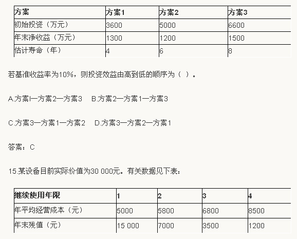 14.某企業有三個獨立的投資方案,各方案有關數據如下: