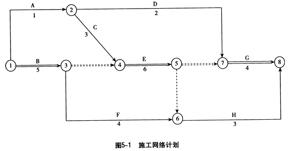 某廠(甲方)與某建筑公司(乙方)訂立了某工程項目施工合同,同時與某降水公司訂立了工程降水合同。甲乙雙方合同規定:采用單價合同,每一分項工程的實際工程量增加(或減少)超過招標文件中工程量的15%以上時調整單價;工作B、E、G作業使用的施工機械甲一臺,臺班費為600. 00元/臺班,其中臺班折舊費為360. 00元/臺班;工作F、H作業使用的施工機械乙一臺,臺班費為400. 00元/臺班,其中臺班折舊費為240. 00元/臺班。施工網絡計劃如圖5-1所示(單位:天),圖中:箭線上方字母為工作名稱,箭線下方數據為持續時間,雙箭線為關鍵線路。假定除工作F按最遲開始時間安排作業外,其余各項工作均按最早開始時間安排作業。