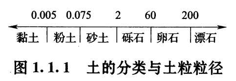 ④根據(jù)顆粒大小及含量分類。土可分為巨粒土、粗粒土、細(xì)粒土等。如圖1.1.1所示。