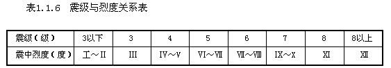 地震烈度是指某一地區(qū)的地面和建筑物遭受一次地震破壞的程度。地震烈度不僅與震級有關(guān),還和震源深度、距震中距離以及地震波通過介質(zhì)條件(巖石性質(zhì)、地質(zhì)構(gòu)造、地下水埋深).等多種因素有關(guān)。目前,我國已制定出地震烈度表,見表1.1.60