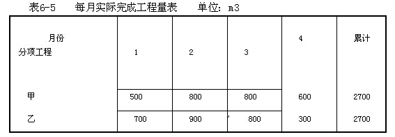 承包商每月實際完成并經簽證確認的工程量如表6-5所示。