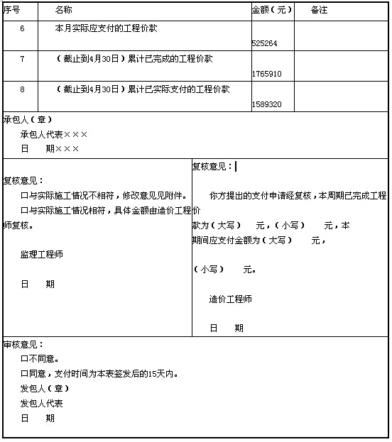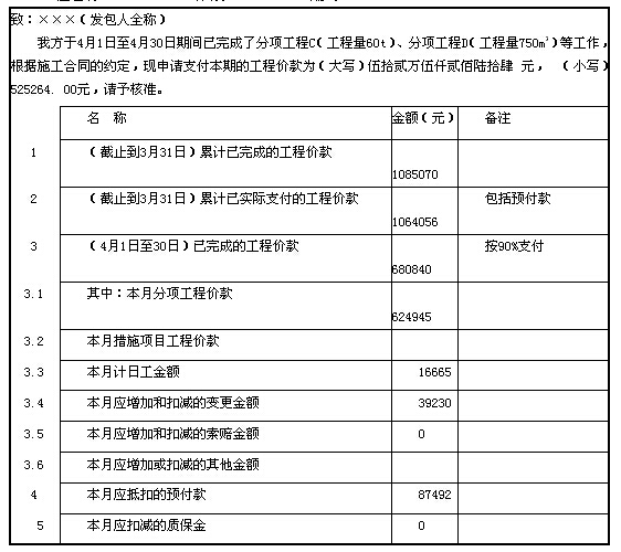 第4個月的“工程款支付申請表”,如表6-11所示。