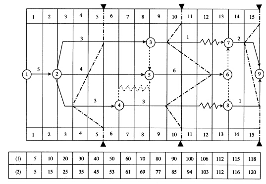 注:1.圖中每根箭線上方數值為該項工作每月計劃投資;