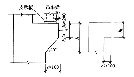 1)為了避免沿支承板內側剪切破壞,牛腿外緣高hk≥庇/3≥200mmo