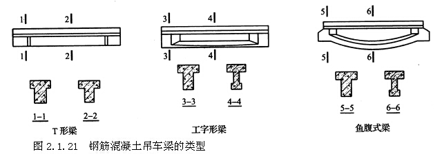 元寶式吊車梁、魚腹式吊車梁、空腹魚腹式吊車梁等,如圖2.1.21所示。吊車梁可用非