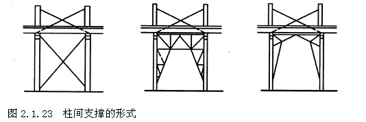 山墻抗風柱經屋蓋系統傳來的風力經柱間支撐傳至基礎。柱間支撐的形式如圖2.1.23